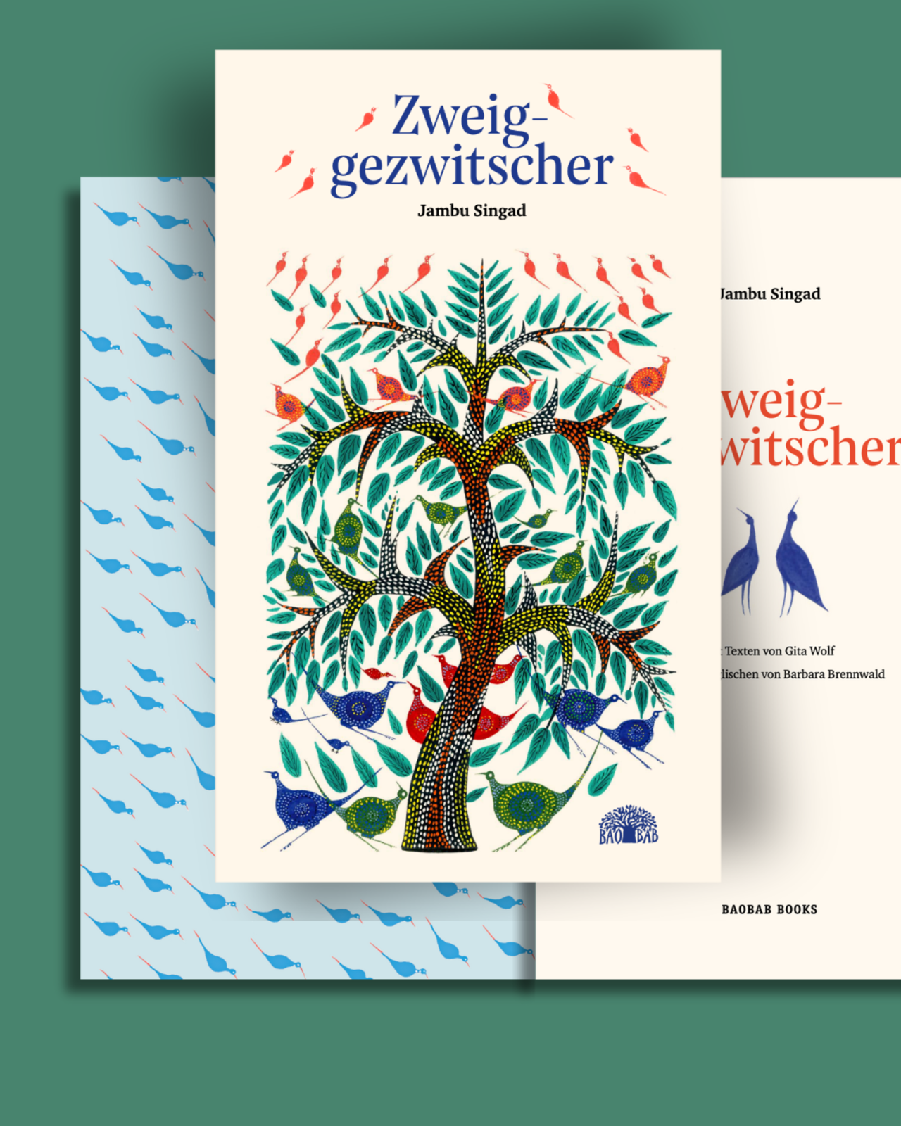 The recently under the title Zweiggezwitscher released German translation of this picture book from India not only shows coulourful paitings but give insight into Jambu's thoughts. With his work, he invites us into the world of the indigenous Bhil community.